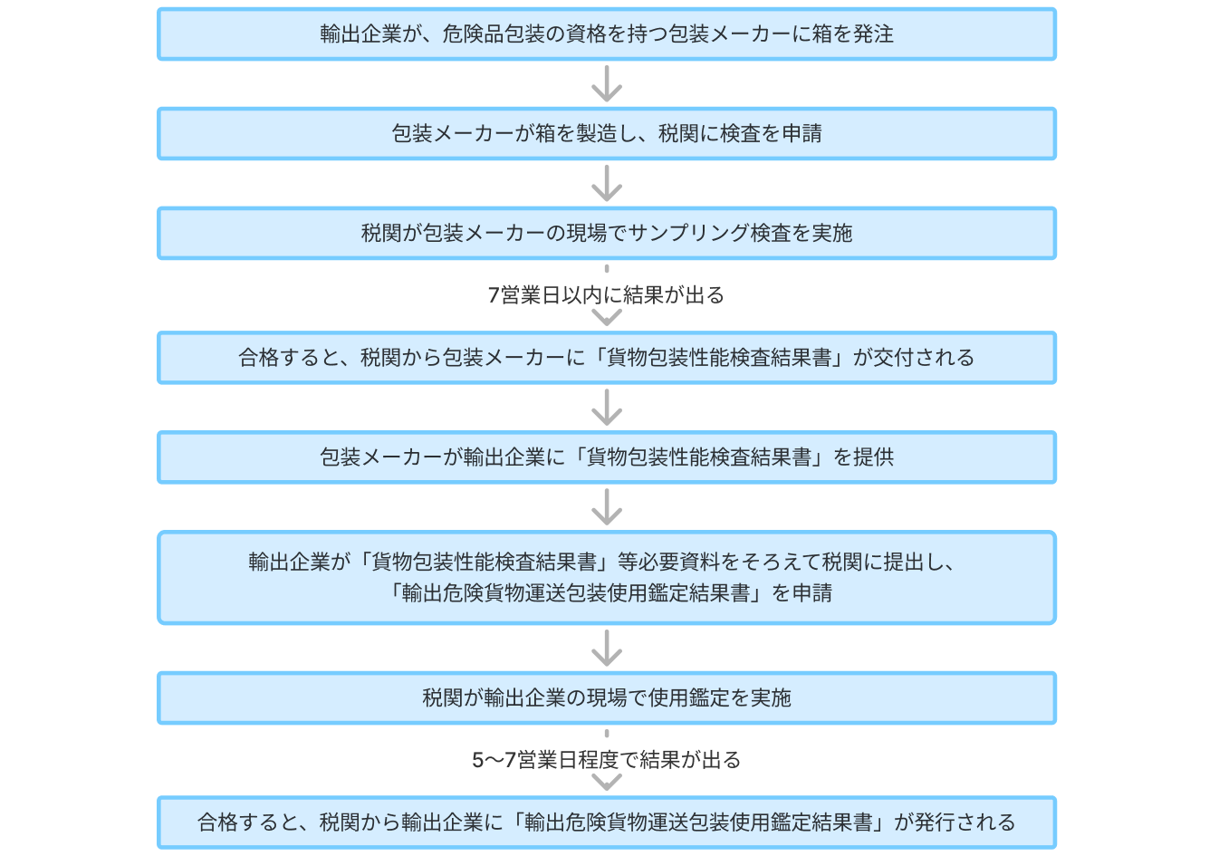 貨物が「危険貨物」と認定された場合、輸出申告の際に必ず「輸出危険貨物運送包装使用鑑定結果書」が必要となります。