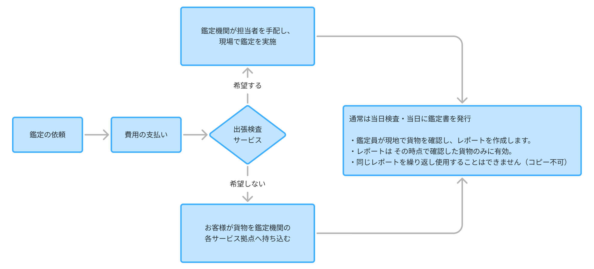 ・内容:鑑定員が工場・倉庫・輸出現場に赴き、貨物や包装、提出資料を確認して危険性を判断